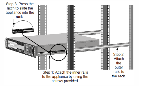 - Install the appliance in the rack.